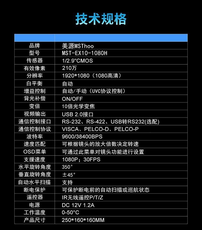 美源-USB视频会议摄像头/1080P高清会议摄像机/广角/高清视频会议摄像头/USB会议摄像头 MST-EX10-1080H 10倍变焦 自营