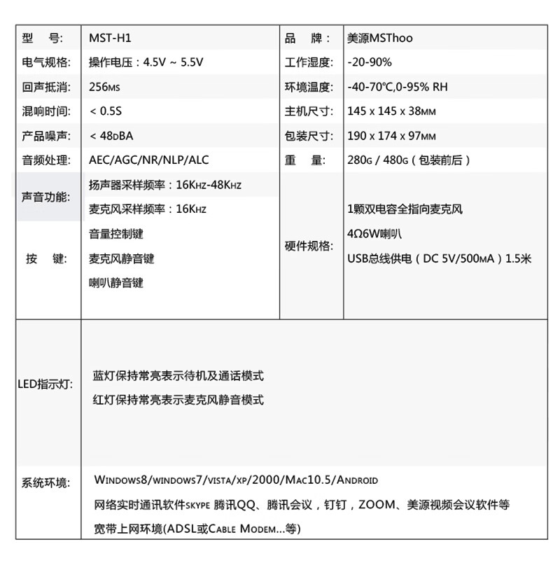 ¥3580.00美源视频会议麦克风/全向麦克风/会议麦克风USB免驱/音视频会议全向麦克风 MST-Q3W(3颗数字硅麦,2.4G无线)