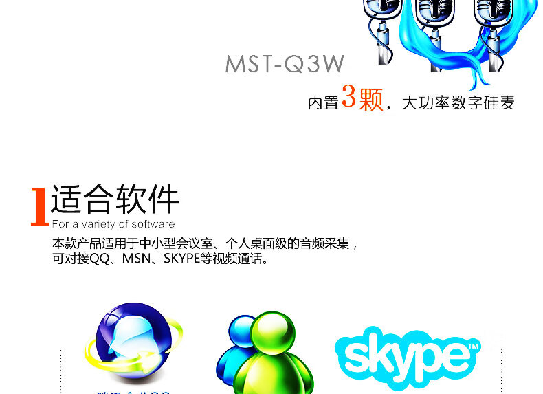 美源视频会议麦克风/全向麦克风/会议麦克风USB免驱/音视频会议全向麦克风 MST-Q3W(3颗数字硅麦,2.4G无线) 自营